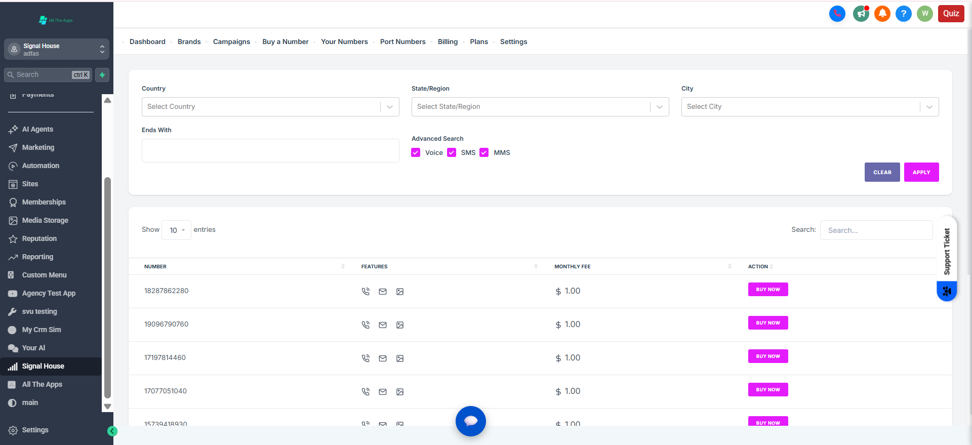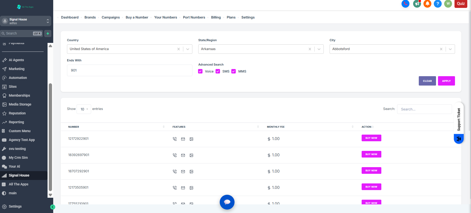 Buying a number is the first step to sending compliant A2P (Application-to-Person) messages via 10DLC. The Signal House app inside GoHighLevel allows you to do this in just a few clicks.