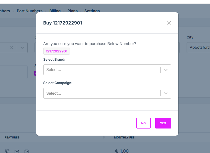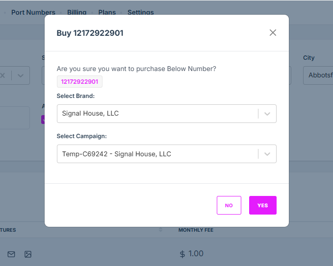 Once you’ve found a suitable number, click the “Buy Now” button next to it.