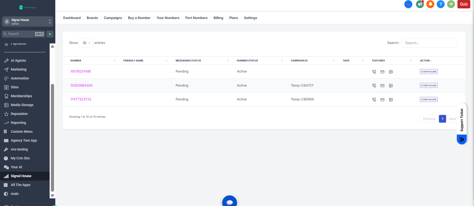 Whether you’ve just purchased a number or need to reassign one, configuring your number correctly is essential to ensure successful messaging. This guide walks you through assigning your number to the appropriate brand and campaign from within the Signal House app inside GHL.