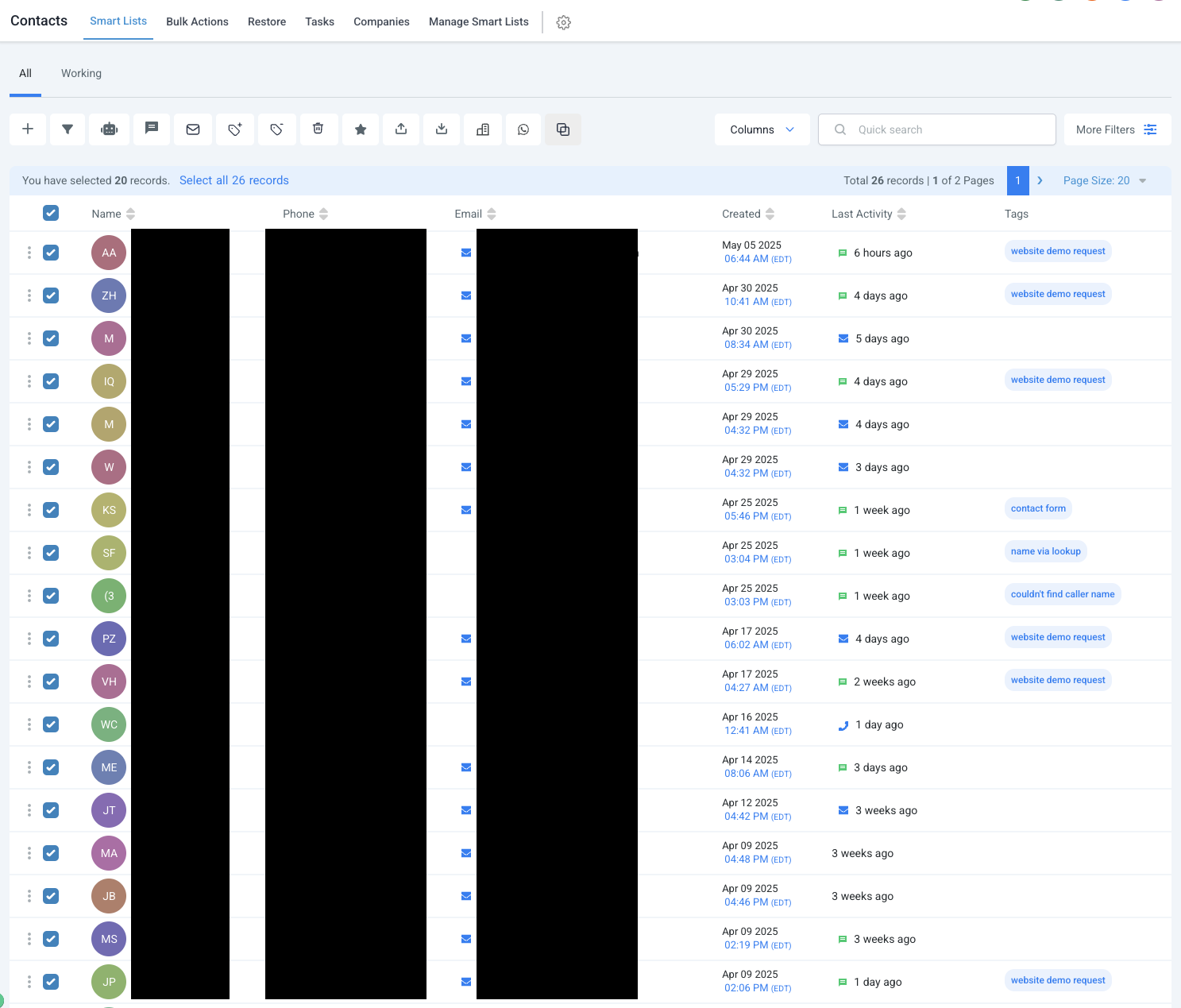 From the GHL dashboard, click "Contacts" on the left-hand sidebar.