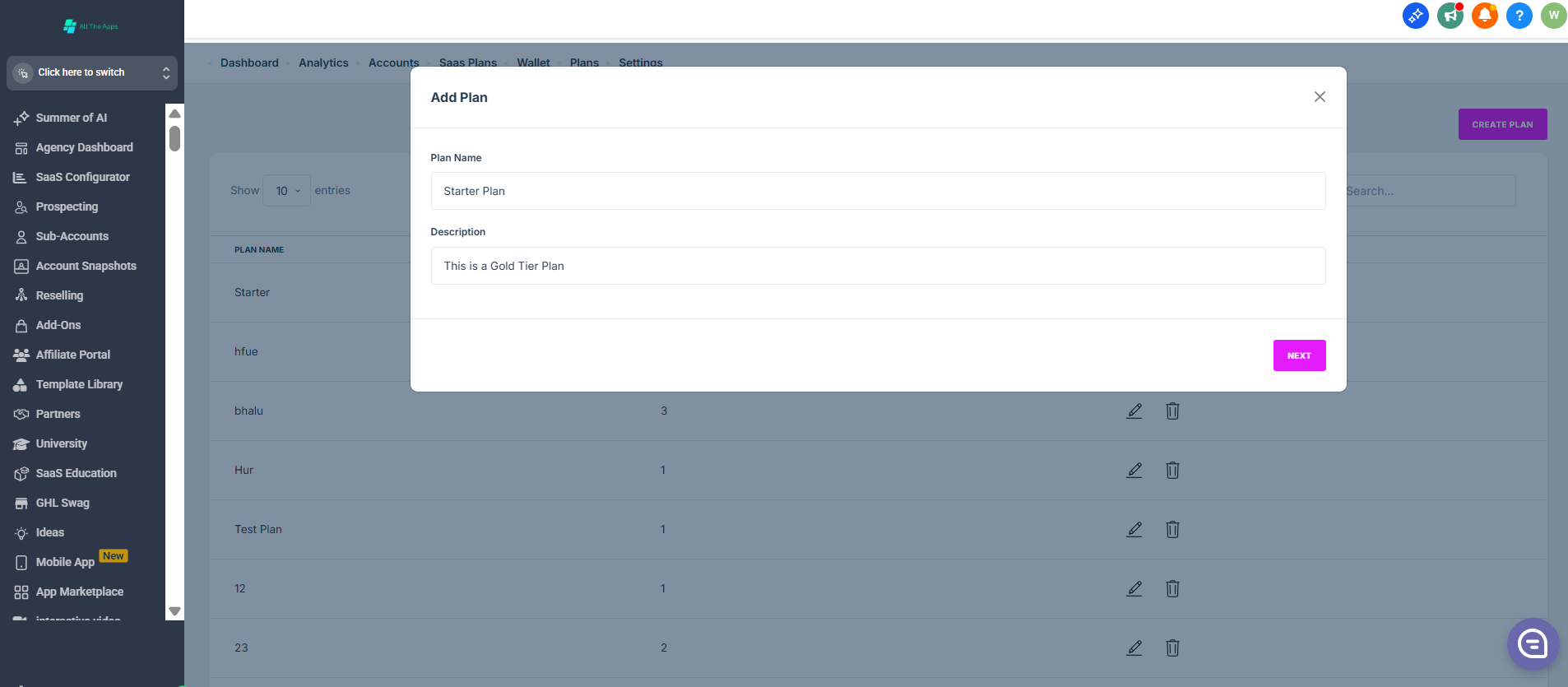 You can reuse previously created SaaS plans or clone them for specific subaccount tiers. Plans can be edited, updated, or removed at any time.